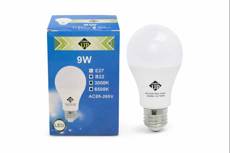Bombillo LED Power Up de 9W con rosca E27 y luz cálida 3000K, ideal para crear ambientes confortables. Bajo consumo eléctrico, buen nivel de iluminación y larga duración.